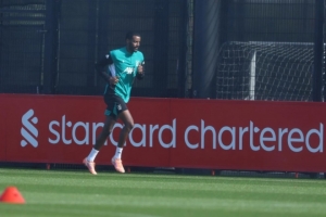 本周二,利物浦进行了备战训练。在训练场上出现了一位久违的身影,伊萨克开始进行跑步训练,但被认为可以在4月复出。