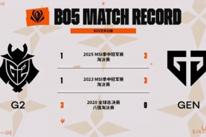 在今天的淘汰赛中,GEN与G2再次相遇,两队历史上曾交手过三次BO5,其中近两场由GEN取胜。