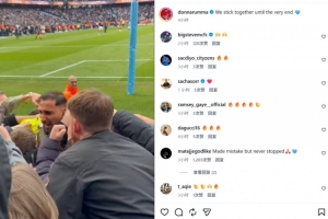 他也在赛后通过社媒晒出自己和曼城球迷相拥的动态,并配文:“我们团结到了最后一刻。”